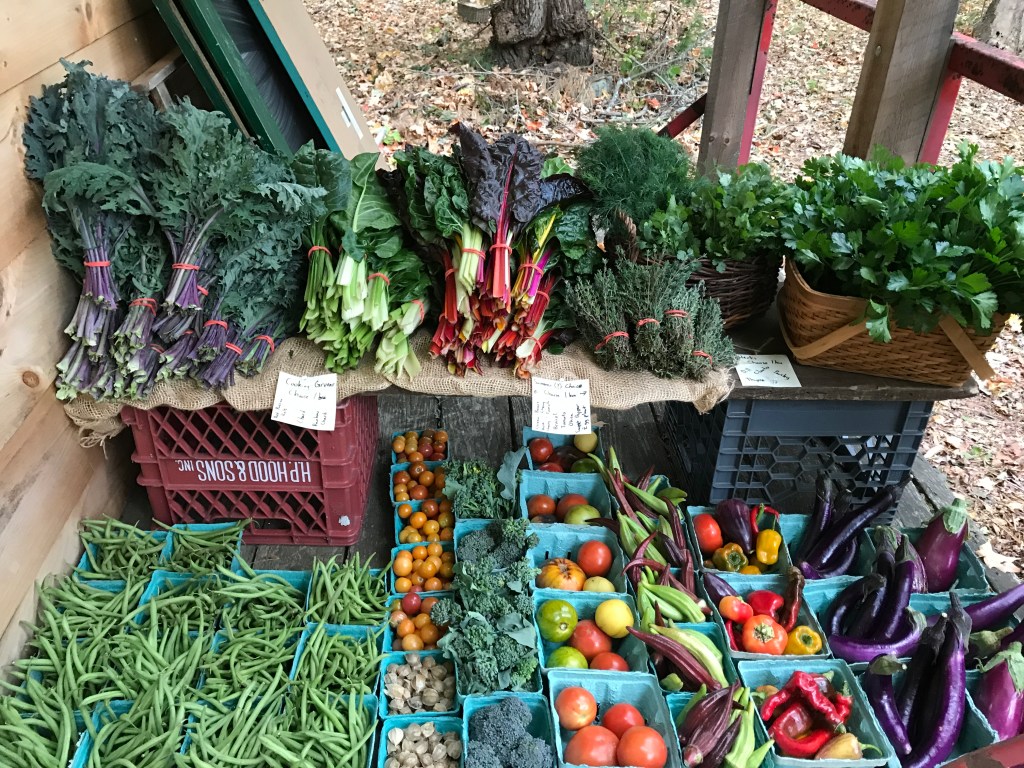 The market-style pickup gives you some choice over your share items. We’ll lay out the week’s harvest, and you come and fill your bags. This allows you to mix and match to your choosing. For example, you can pick which potatoes you’d like to take— big or small, yellow, red, or purple, or some of each. Or sometimes the choice will involve different options— a box of cherry tomatoes or a box of tomatillos. Or a bunch of kale versus a bunch of chard. This way, you get to pick exactly what you want. These pickups are both on Tuesdays. The farm stand pickup is from 12:30 to 3:00 PM, located at the corner of Walnut and Prospect Streets in Seekonk. The Providence pickup is from 5:00 to 7:00 PM, located at Farm Fresh RI, 10 Sims Ave.